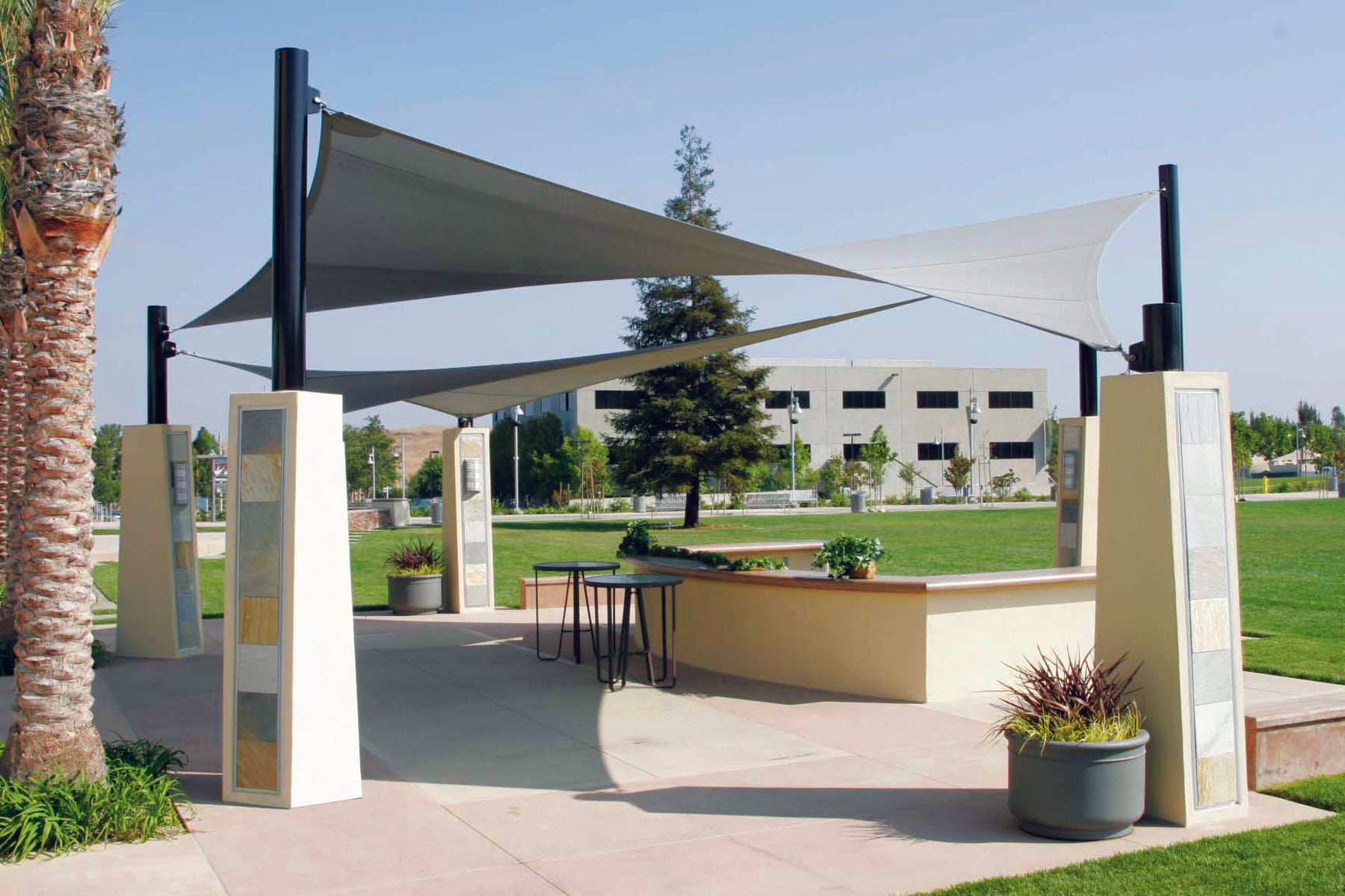 This uniquely designed shade structure features an expansive hyperbolic shape that provides excellent cover for seating areas and other outdoor settings. The custom sizing capabilities ensure the perfect fit for your requirements and location. You can also select adjustable columns to support the structure. Our team will work closely with you to create a functional, aesthetically pleasing design that meets your needs. We can even assist with color selection to help your business project the ideal visual presentation. Choose from more subdued tones to complement the surrounding landscape or bright, vibrant hues that make a bold statement and ensure your property stands out.