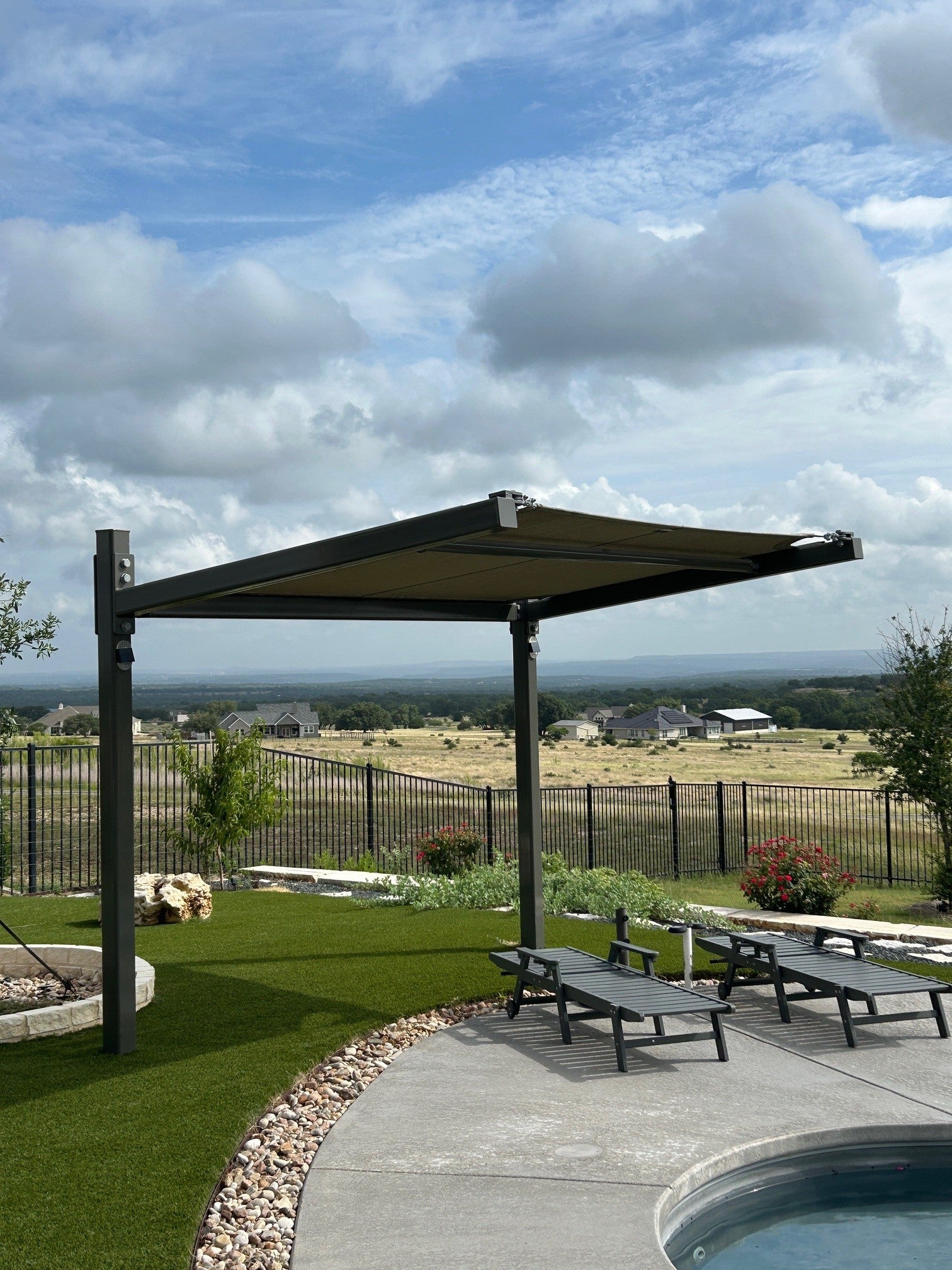 The Slanted Cantilever Wing design has two columns and a tilted-up fabric top that provides extended shade coverage at an angle. It adds a modern touch to outdoor spaces, making it a great choice for creating stylish and inviting shaded areas. Whether it’s for a lounge or dining space, this design blends form and function to enhance the ambiance of any setting.