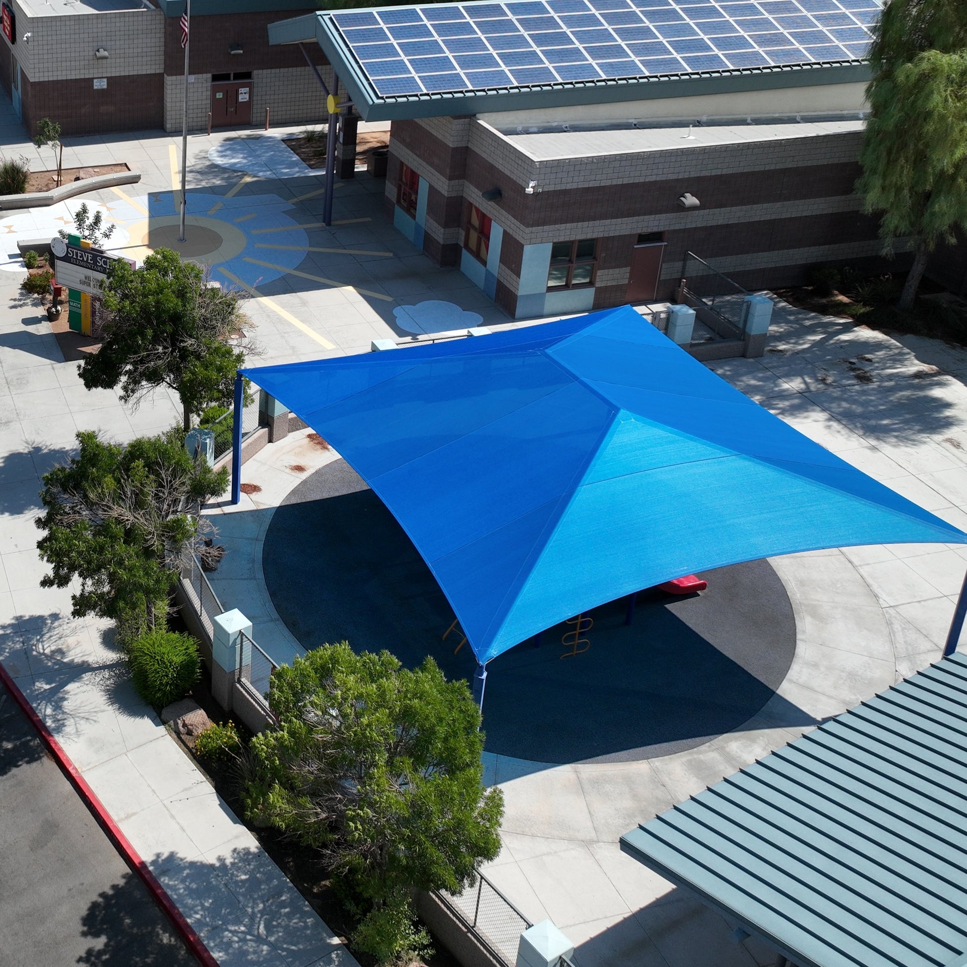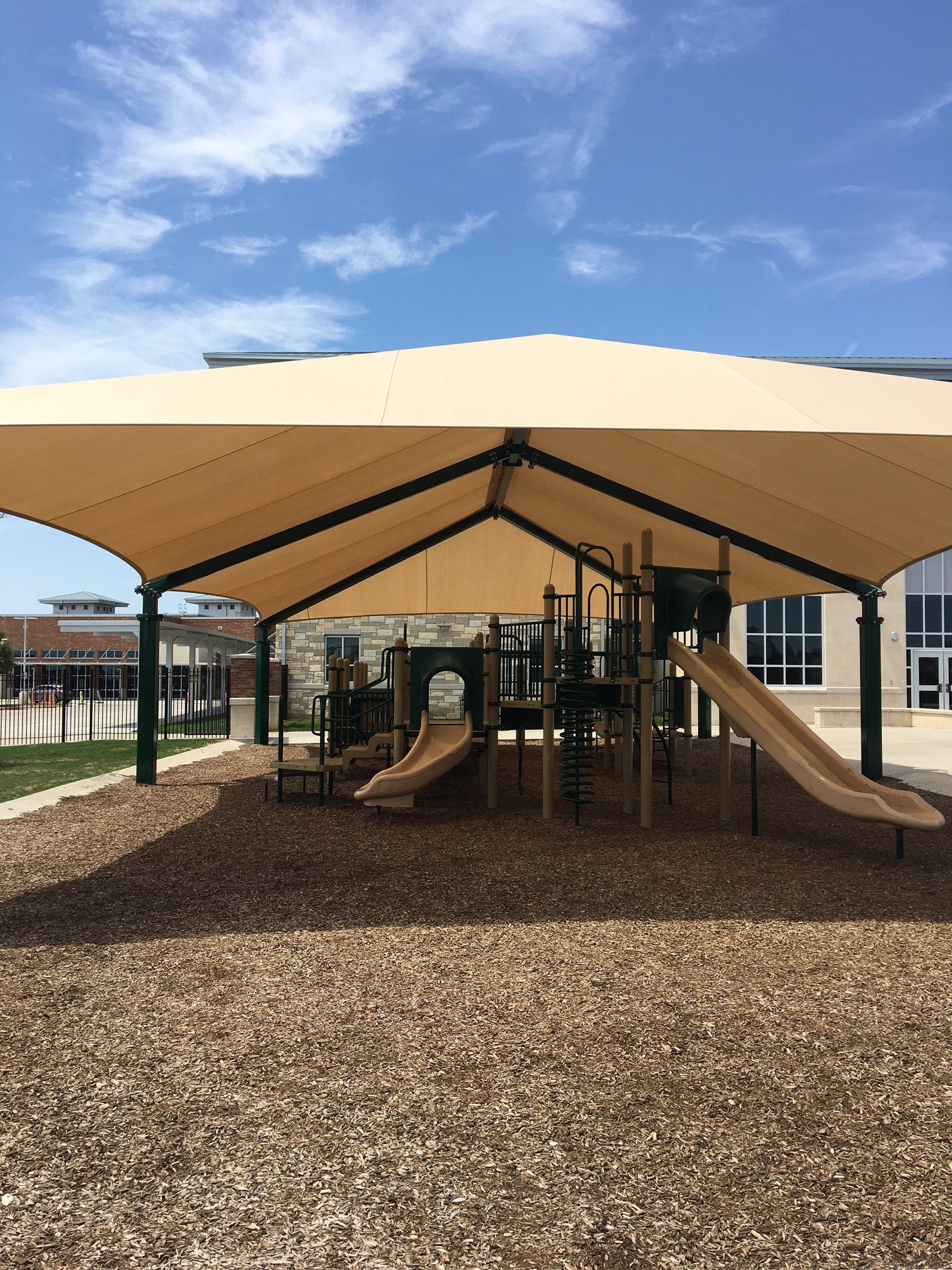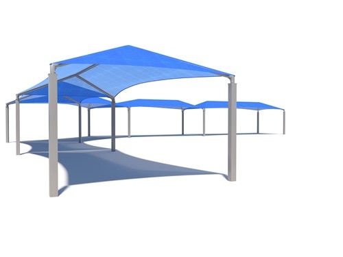 Hip shade structures offer exceptional versatility and cost-effective solutions. With a sleek hip footline or single peak design, they are suitable for shading diverse spaces like playgrounds, park picnic areas, and amusement park waiting lines. These structures can also be easily combined for extended coverage. They are low maintenance, durable, and visually appealing, providing a year-round shading solution that seamlessly combines form and function.