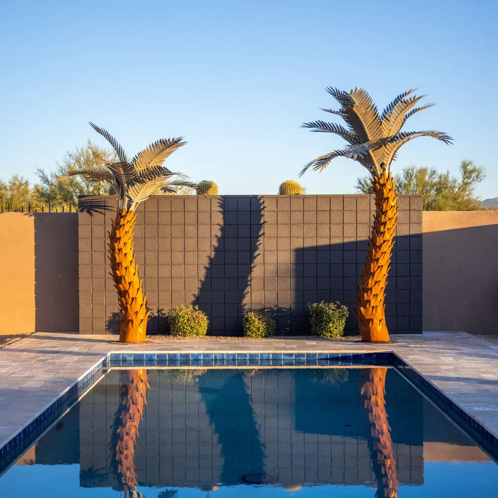Our Metal Sunset Palm Tree is an artistic handcrafted sculpture that captures the tropical allure of a palm tree. Radiating serene sunset vibes in durable form.